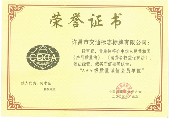 公司AAA級(jí)質(zhì)量誠信會(huì)員單位